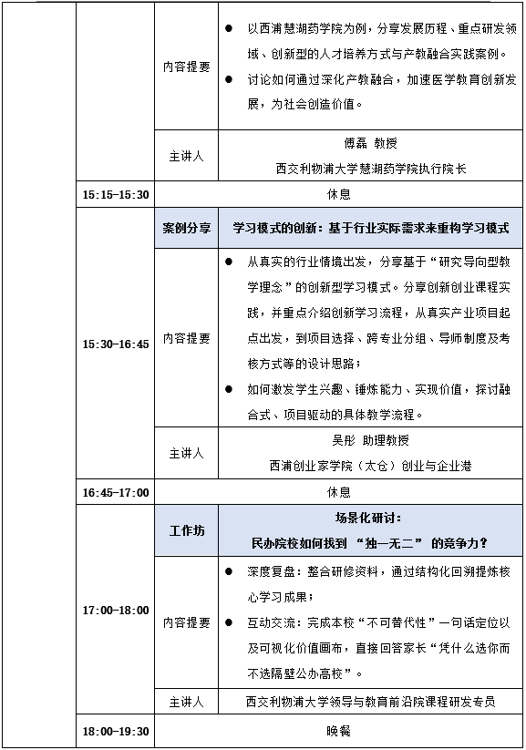 问题导向与互动研讨:围绕民办高校真实困境设置专题,思考与提炼自身优势,寻找独特的办学模式和落地方案,通过工作坊、案例研讨、校园参访等形式促进深度交流与学习。