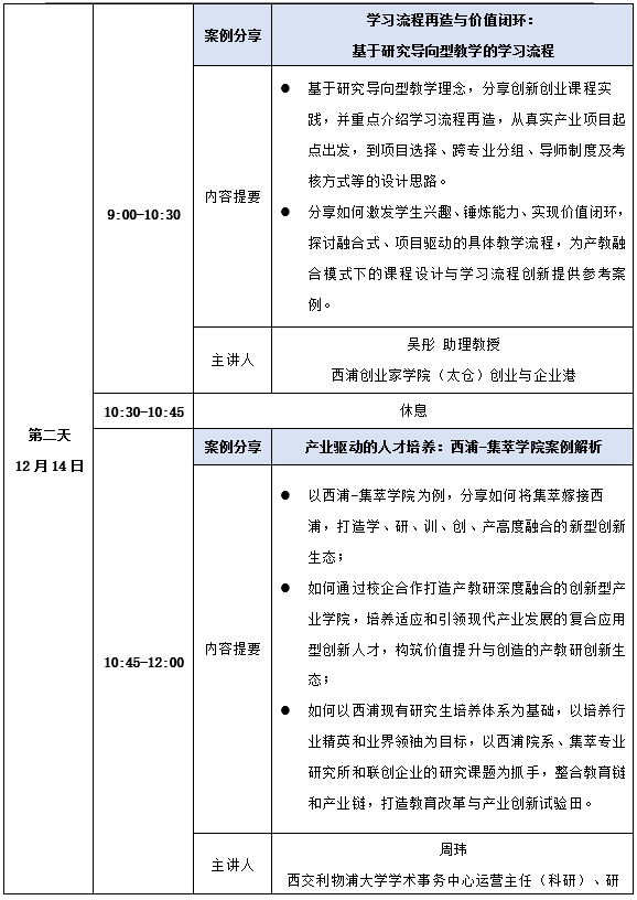 本项目深度萃取西浦融合式教育理念与“产教融合五步法”实操精髓,依托西浦创业家学院(太仓)独特的“产、政、研、学、社”五位一体创新生态与行业精英培养体系,系统解构从“行业真实情境”到“实现价值转化”的全流程实施逻辑。本项目致力于推动参与高校实现从理念认知到教学模式的双重重构,提供一套可复制、可推广的创新范式与落地路径。