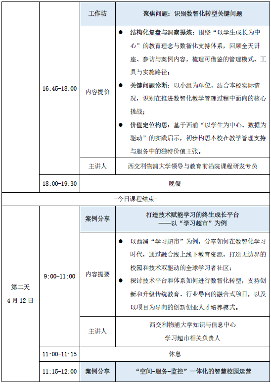 倡导前瞻性与系统化设计:贯穿“理念革新—体系重构—行动落地”全流程,从未来教育理念重塑,深入展示“以学生为中心”在质量保障、学术与非学术支持、平台与生态搭建、校园生态等维度的体系化重构,并聚焦数智工具如何具体赋能上述环节,引导参与者完成从提炼关键问题到规划行动方案的完整闭环,确保学习成果的连贯性与可实施性。