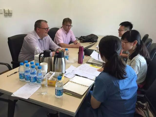 西浦英语与文化传播系的阮周林博士与耿丹学院应用语言系的老师在一起分享交流